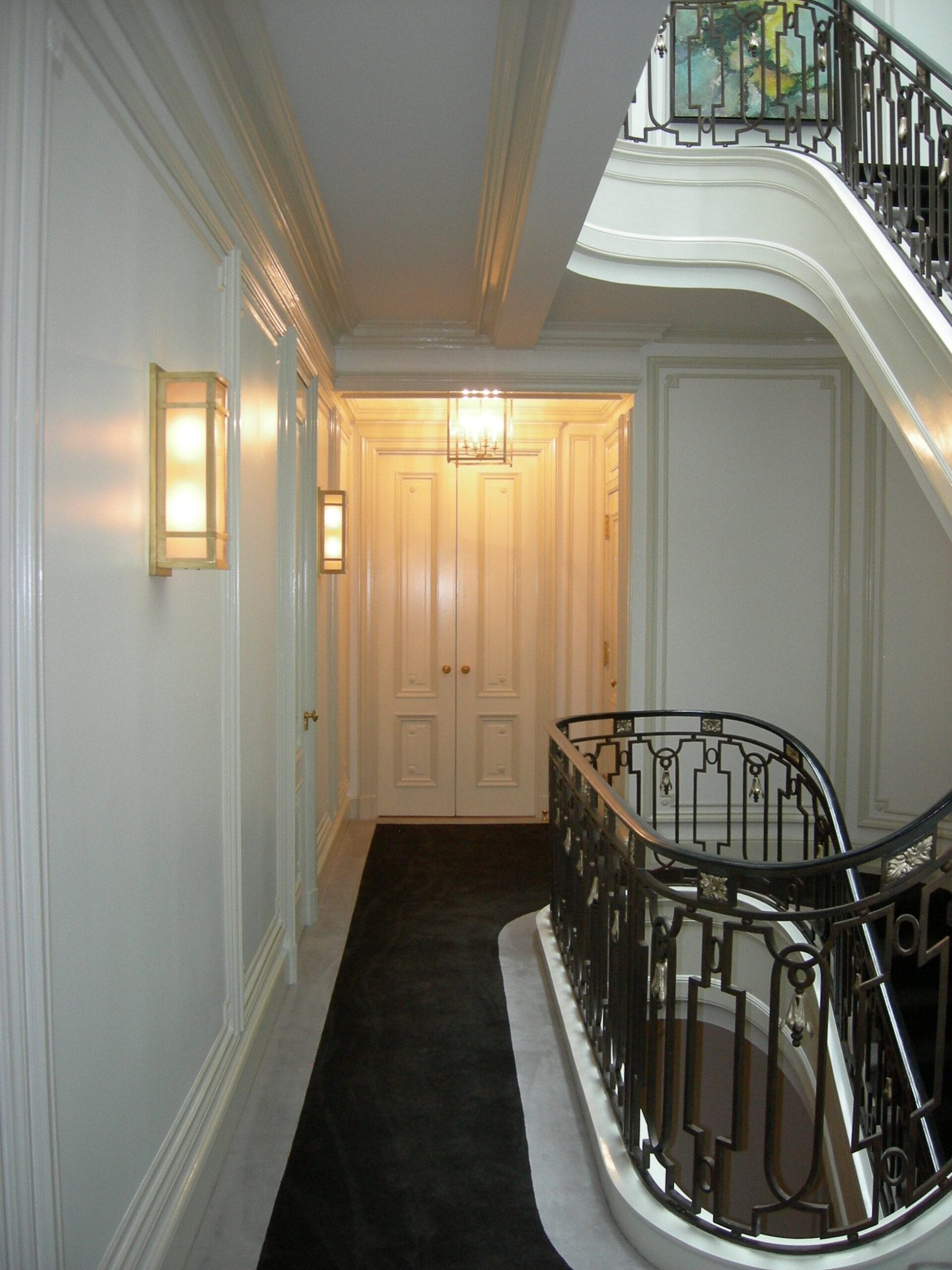 The upstairs pied-à-terre for guests exudes warmth and elegance with a timeless and soothing ambiance.