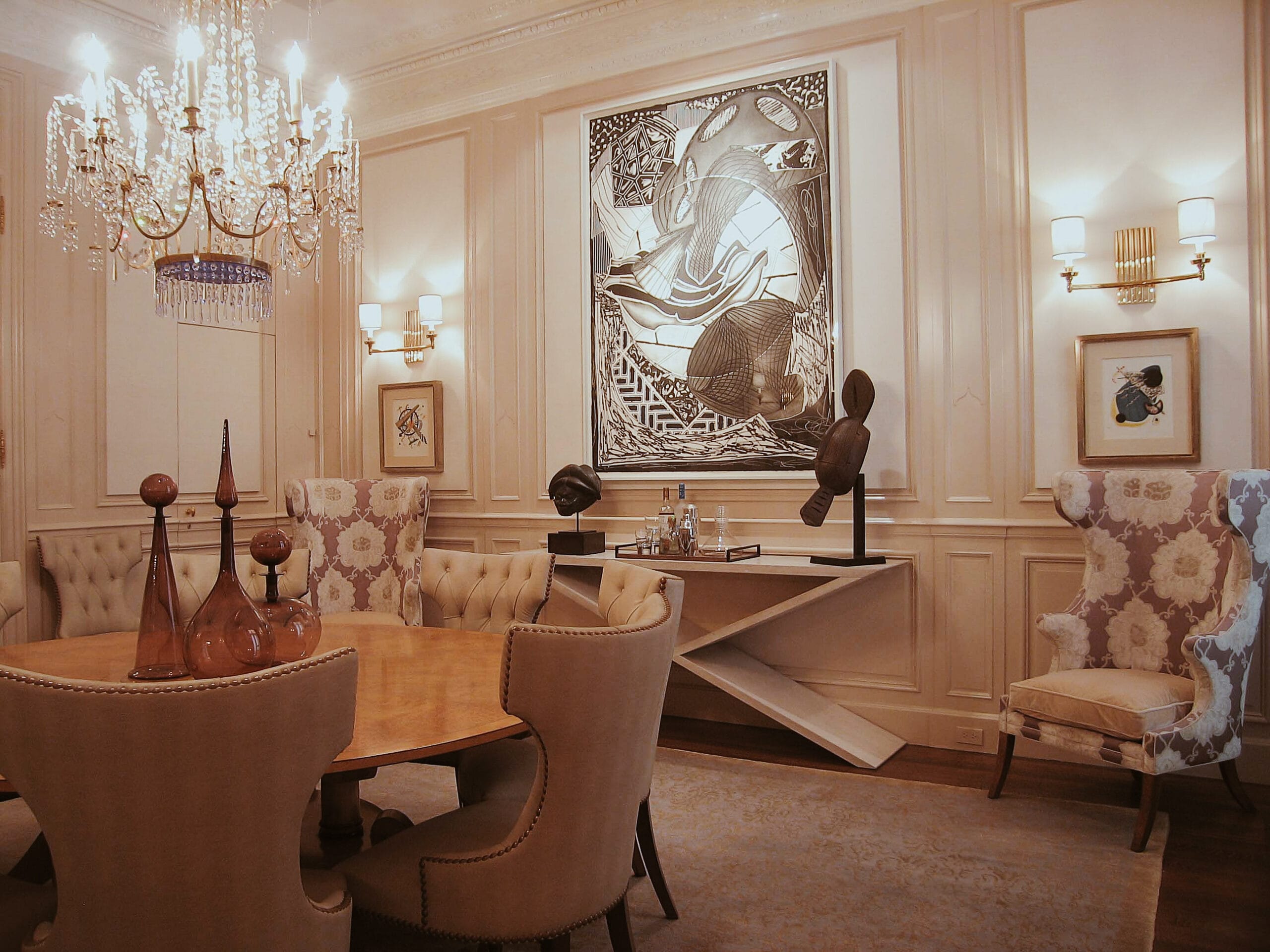 Curating an environment that exudes both sophistication and comfort, each room was thoughtfully composed for a harmonious blend of color, artistry, and historical elements while highlighting our clients extensive art collection.